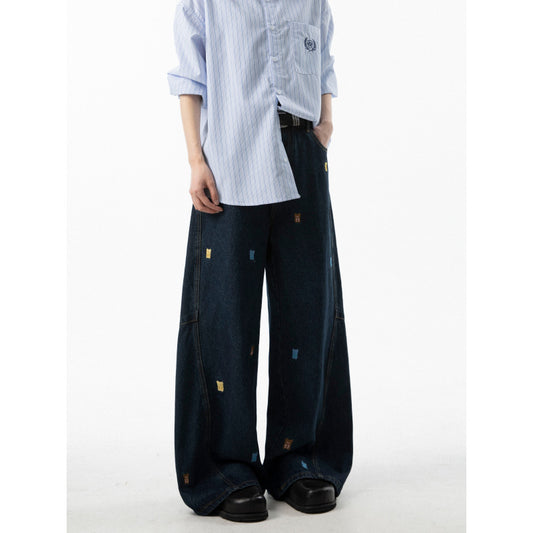 Jeans Men Autumn Winter Loose Straight Leg Pants Vintage Wide Leg Pants Men Youth Asymmetric Deconstruction Trousers