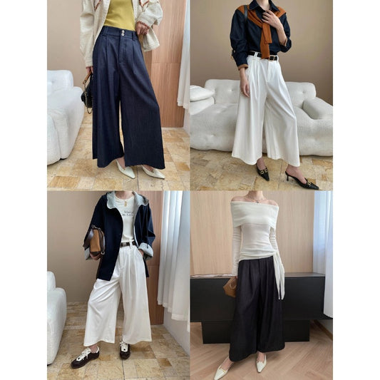 Comfortable Zone Double Pleat High-Fall Wide-Leg Casual Pants for Pear Shape Petite Size