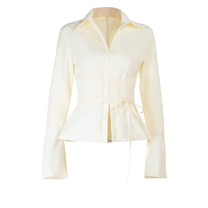 Strap slim fit long sleeved solid color versatile top for slimming